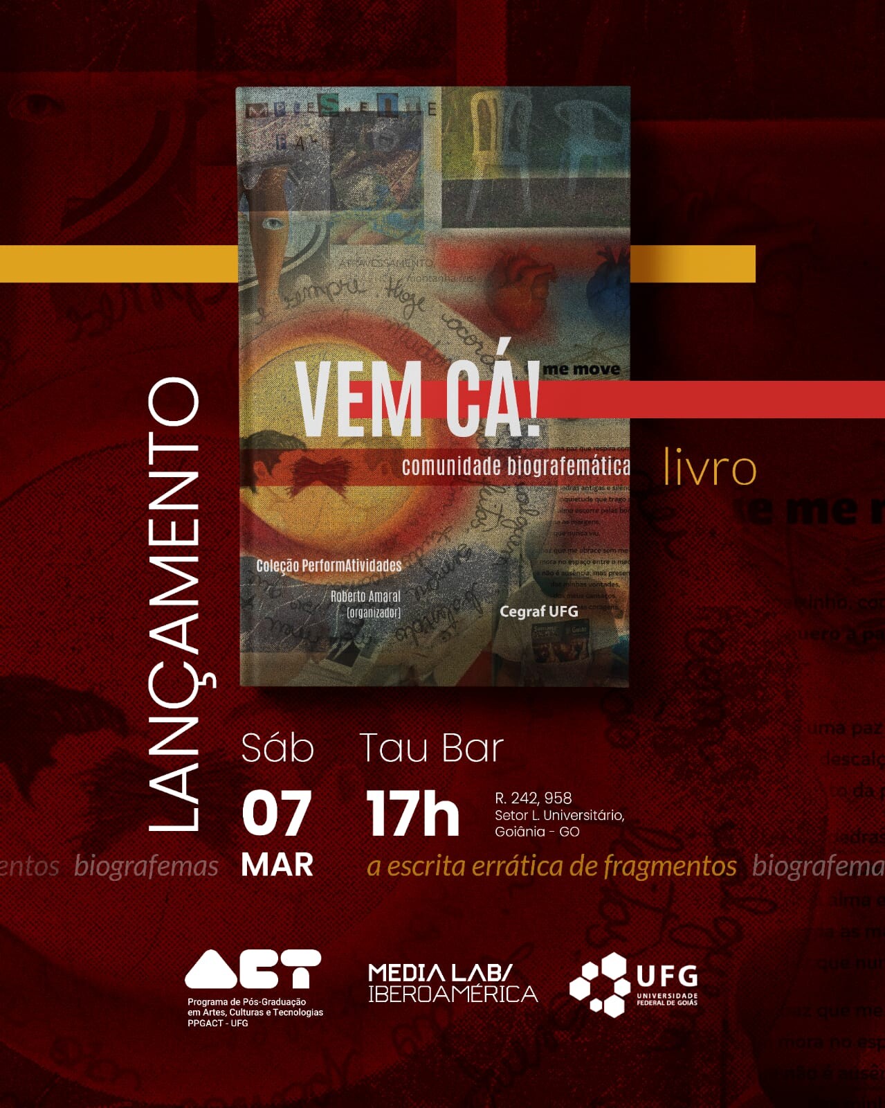 Convidamos para o lançamento do livro "Vem cá! Comunidade Biografemática", publicado pelo Cegraf UFG, e organizado pelo Prof. Dr. Roberto Amaral.